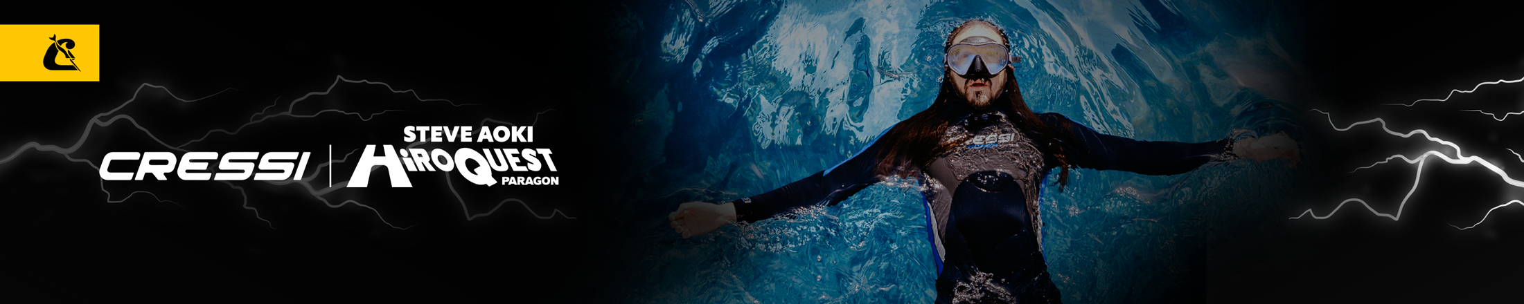 Para Steve Aoki, o oceano sempre foi uma segunda casa — um lugar onde a aventura nunca termina. Como mergulhador apaixonado e contador de histórias, foi natural se unir à Cressi para uma colaboração única. Os snorkels e máscaras HiROQUEST de edição limitada canalizam a energia dos personagens Hiro e Hyro de Steve, unindo design vibrante com performance de elite. Mergulhe no próximo capítulo com equipamentos feitos para exploradores, sonhadores e lendas.