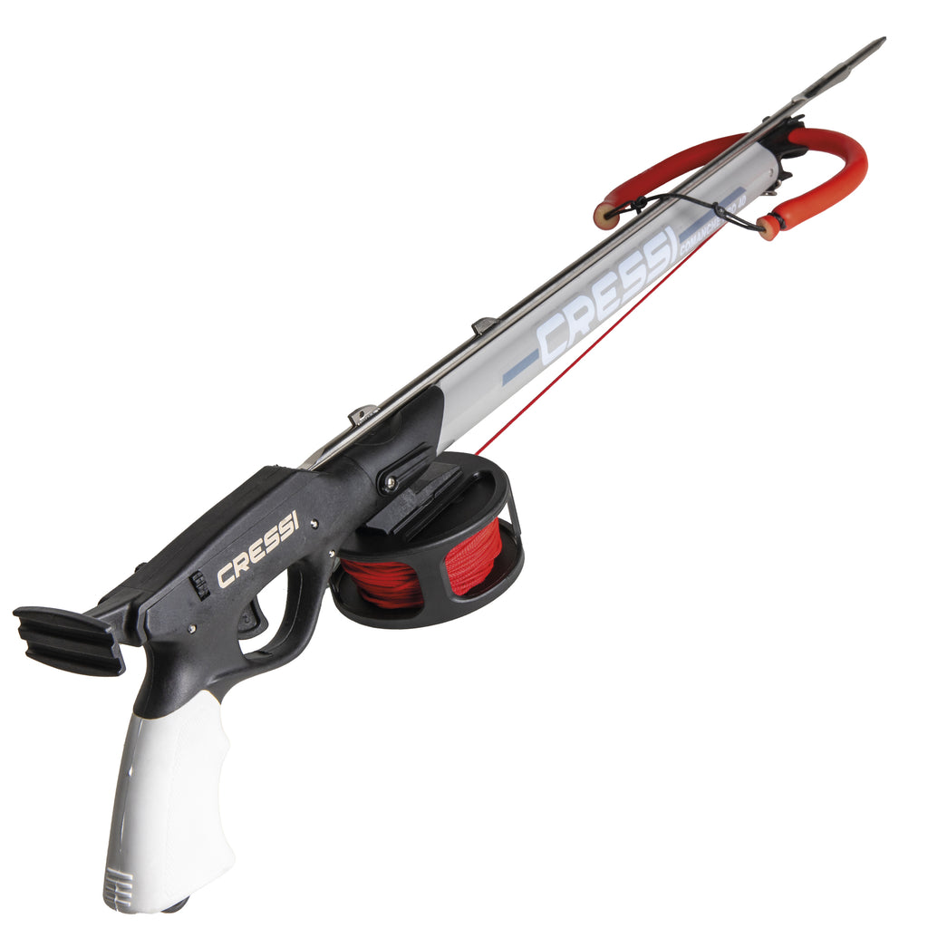 -Arpão Cressi Shark Fins: Aço carbono 6.35mm com sistema Shark Fins e ponta de alta penetração.