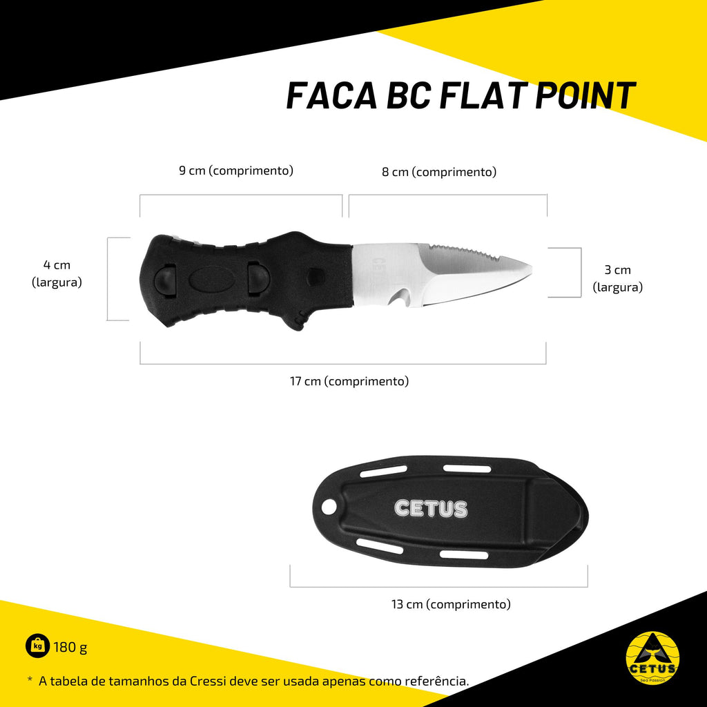 A Faca Cetus BC Flat Point é a escolha ideal para mergulhadores que precisam de uma ferramenta compacta, segura e fácil de manusear.