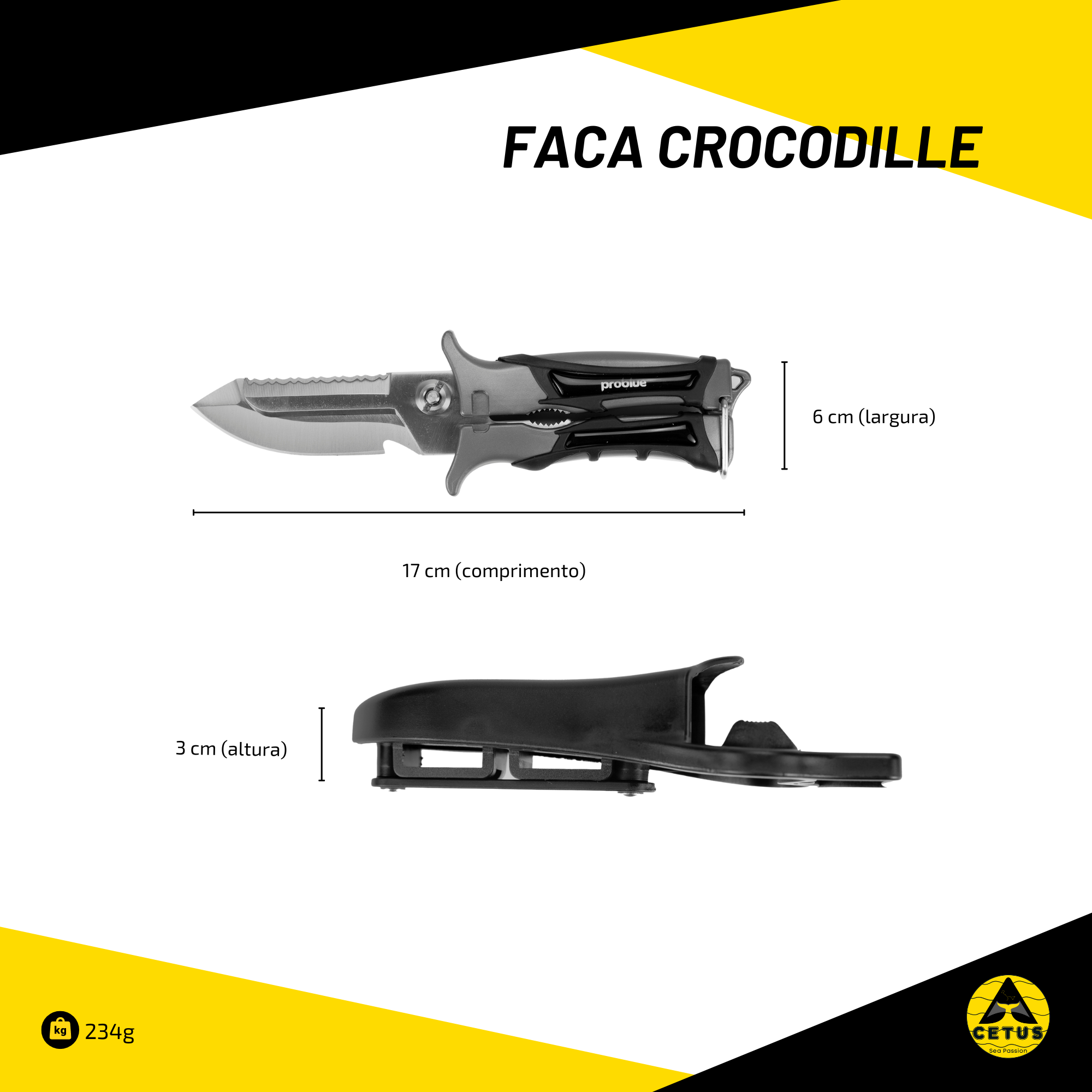 A Faca de Mergulho Cetus Crocodille é a escolha ideal para mergulhadores que precisam de uma ferramenta versátil, compacta e durável.