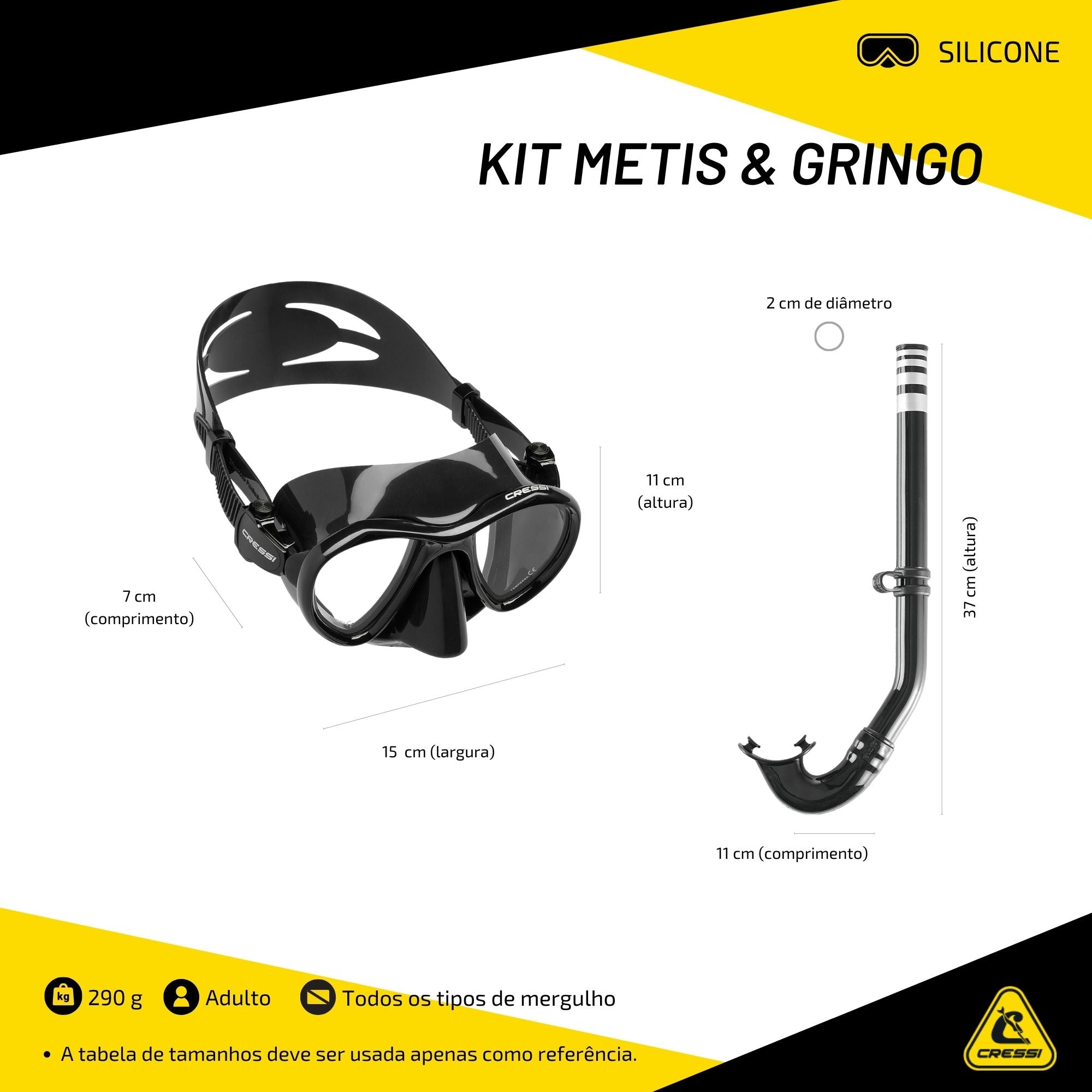 Kit de Mergulho Cressi Metis Black + Gringo: Conforto e Praticidade para Suas Aventuras Subaquáticas