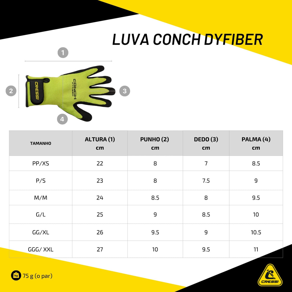 Design Confortável e Funcional: A Luva Cressi Conch DyFiber oferece um ajuste preciso e confortável, protegendo as mãos durante mergulhos e outras atividades subaquáticas.