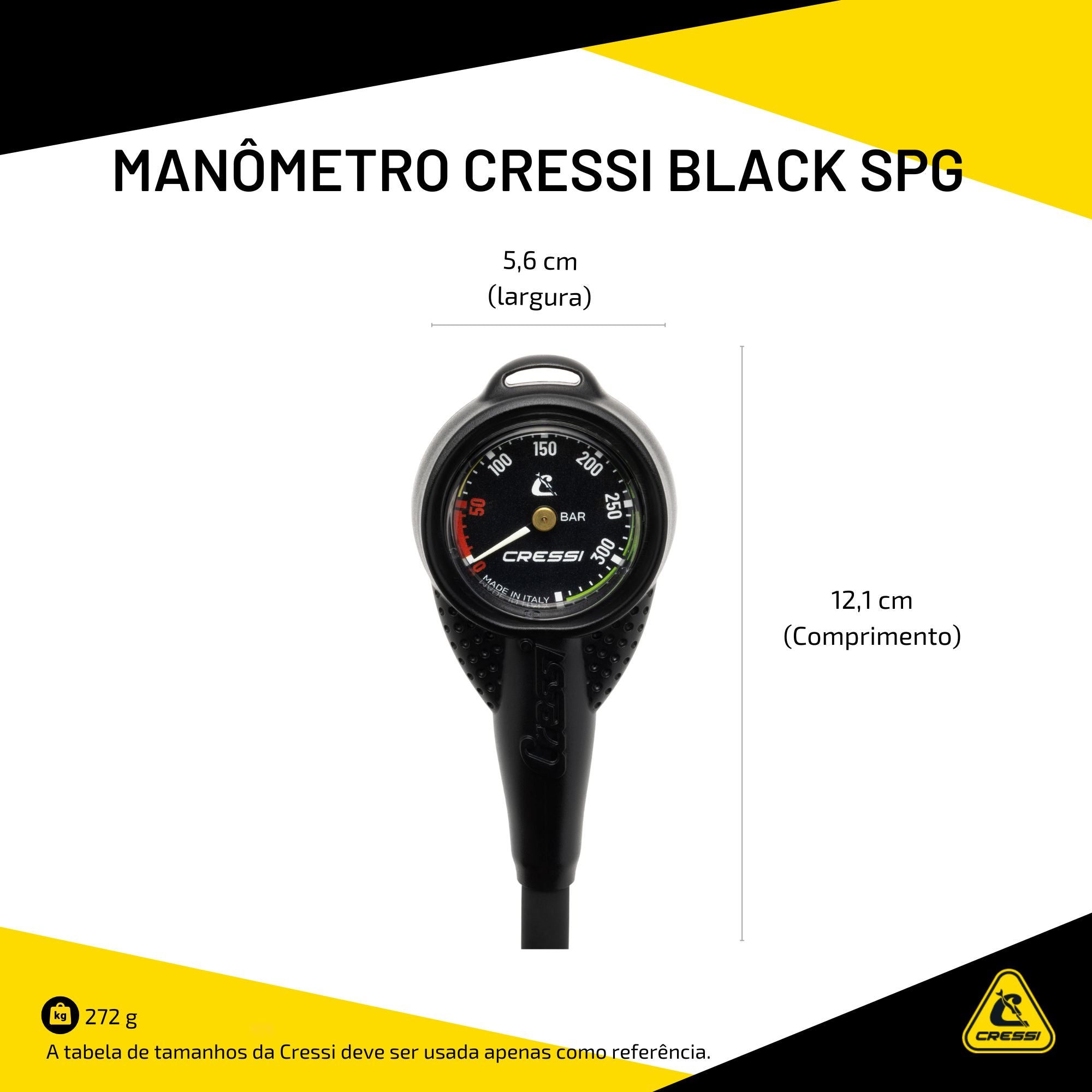 Mergulhe com confiança usando o Manômetro Cressi Black SPG, projetado para oferecer precisão, durabilidade e um design compacto. Ideal para quem busca controle total da pressão dos cilindros, este mini manômetro é essencial para explorar o oceano com segurança.