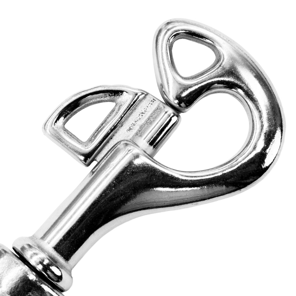 Material Resistente: Feito em aço inox, o mosquetão é resistente à corrosão, garantindo segurança em diversas condições subaquáticas.