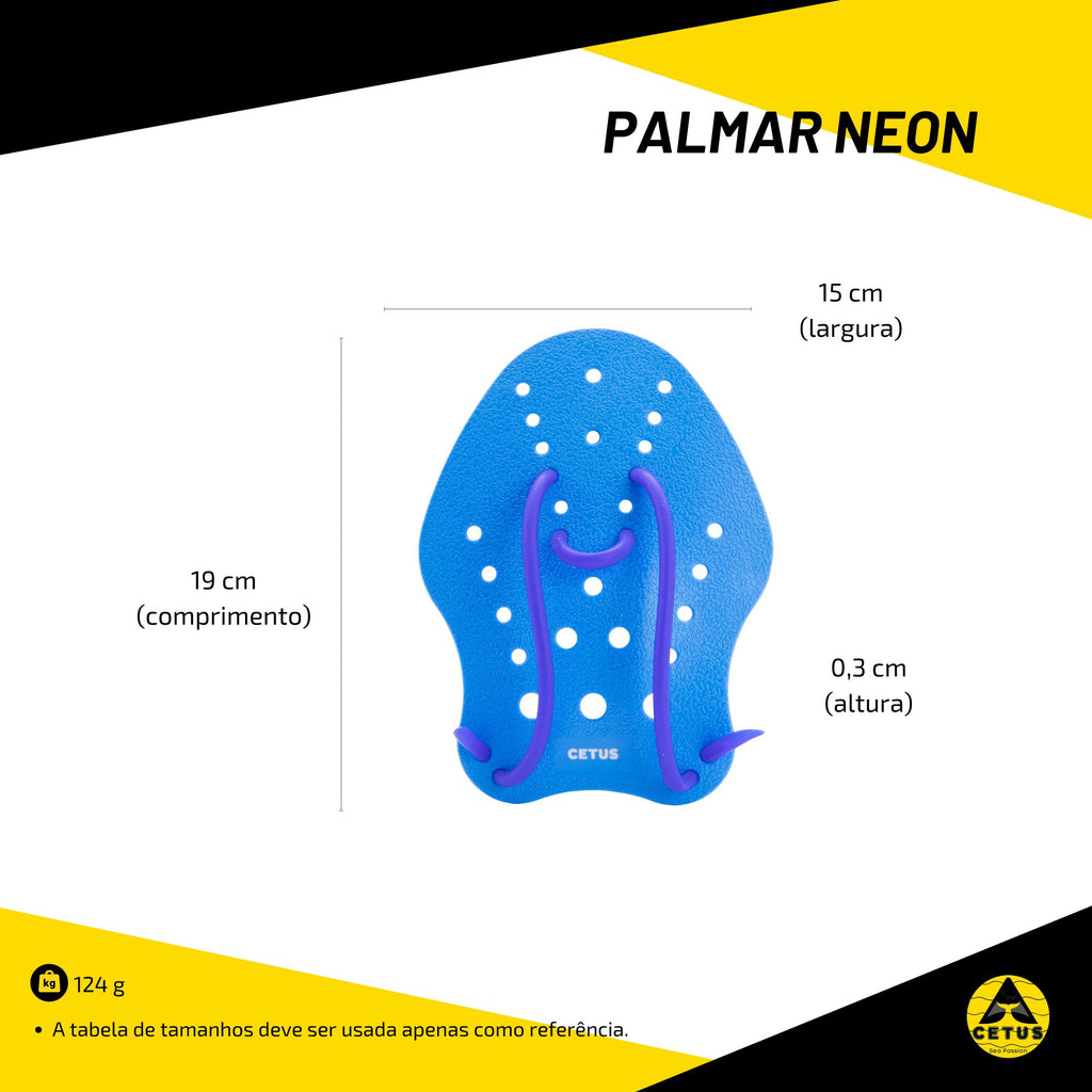 O Palmar Cetus Neon é um equipamento essencial para nadadores que desejam fortalecer os membros superiores e melhorar a técnica da braçada. Utilizado tanto em natação quanto em hidroginástica, o palmar aumenta o esforço do nadador ao deslocar maior volume de água do que as mãos sozinhas, promovendo melhores resultados e maior resistência.