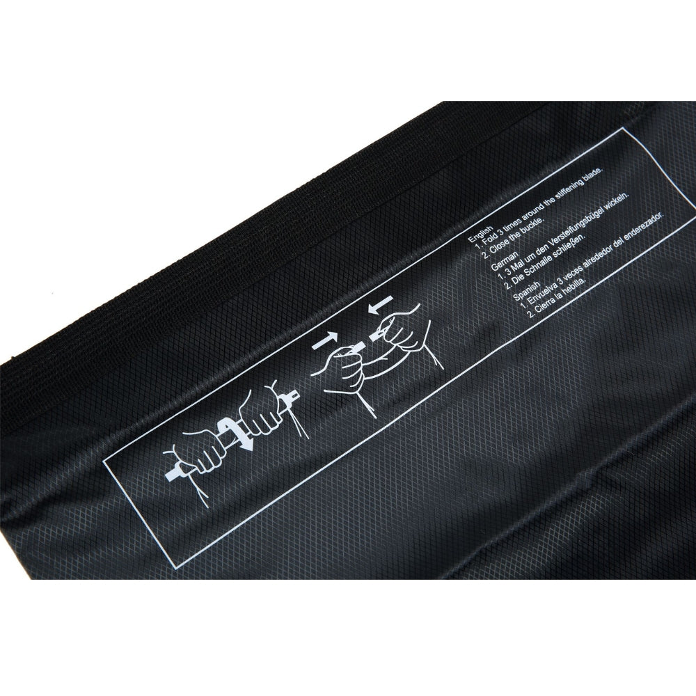 - Para garantir a vedação, é essencial enrolar corretamente a parte superior antes de fechar a fivela.